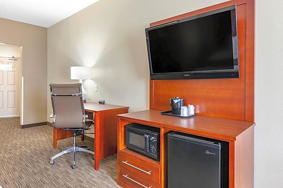 A flat-screen cable TV is included in this suite, along with a microwave and fridge.